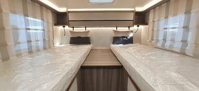 Semintegrale di casa Roller Team con letti gemelli in coda e basculante anteriore su motore Ford 2.0 165 cv. 4 posti omologati e 4+1 posti letto. Lungo 7,45 e largo2,35. Il veicolo di serie offre: cerchi in acciaio 16'', Cruise Control, TPMS, fari fendinebbia, freno a mano elettrico, retrocamera, sensori di parcheggio anteriori, radio touchscreen 12'' Apple Car Play e Android Auto, quadro strumenti semi-digitale 8'', clima cabina automatico, ABS/ESP, Start&Stop, doppio airbag, specchietti con sbrinatore, Fix&Go, attacchi isofix, finestre Seitz, prese USB zona notte, prese 220V cucina e garage e zanzariera scorrevole porta ingresso. Per renderlo ancora più bello abbiamo aggiunto il Pack Kronos (fari High Series con luci di svolta statiche, vano portaoggetti con serratura, finiture cruscotto Trend, paraurti e modanature laterali in tinta con la carrozzeria, porta cellula a 2 punti con finestra fissa e chiusura centralizzata, CpPlus, copri lavello/tagliere, pannello solare 200W con regolatore MPPT, oscuranti cabina plissettati e coprisedili cabina), il Pack Open Air (veranda antracite, presa esterna gas, doccetta gavone) e modificato il riscaldamento in Truma Combi 6 diesel.Attenzione: a tutela della nostra clientela, garantiamo che le foto pubblicate sono tutte autentiche ed i veicoli inserzionati sono realmente presenti presso la nostra rivendita, pertanto, prendiamo le distanze da chi con poca chiarezza espone in vendita veicoli non avendone il possesso e con foto false ne destabilizzano il mercato. Vi Pregh