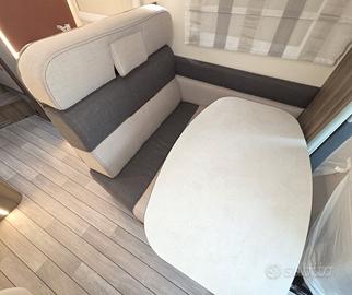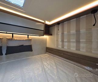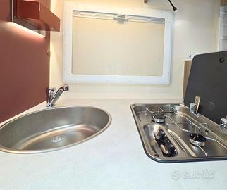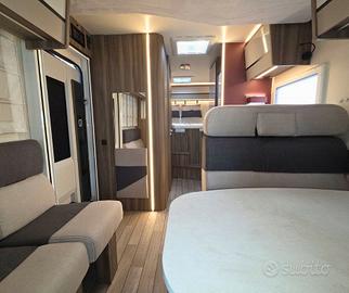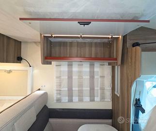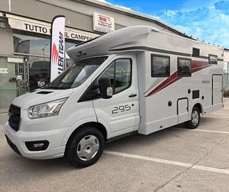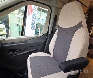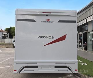 Roller Team Kronos 295 TL su Ford Transit 2000, 165 CV, 5 posti viaggio e 5 posti letto. Camper versatile e moderno con dotazioni premium: retrocamera, cruise control intelligente, climatizzatore automatico, skyroof e pannello solare 200W. Perfetto per viaggi in famiglia, comfort e sicurezza al top in ogni avventura.