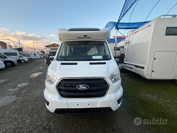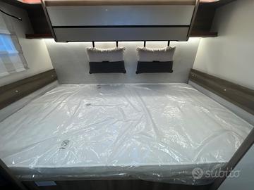 Rollerteam presenta il semintegrale più spazioso di sempre con maxi dirette avanzata con divano e sedili girevoli , letto matrimoniale posteriore di dimensioni generose con movimentazione elettrica e basculante matrimoniale che lascia la porta libera per uscire .