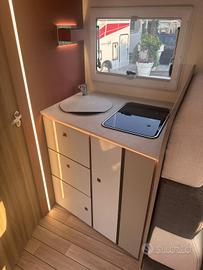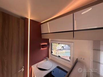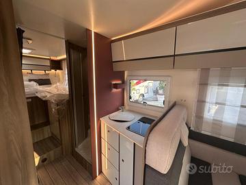 (Fari "High Series" con luci di svolta statiche - Vano portaoggetti con serratura - Finiture cruscotto "Trend" - Paraurti e modanature laterali verniciati in tinta con la carrozzeria - Porta Cellula con 2 punti di chiusura, con finestra e chiusura centralizzata - Pannello di controllo CP-Plus - Coperchio lavello/tagliere - Pannello solare da 200W con regolatore MPPT - Oscuranti cabina plissettati - Coprisedili cabina)