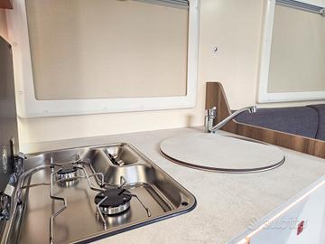 Il Kronos Fit 230 TL è una soluzione ideale per famiglie e gruppi, grazie ai suoi 4 posti omologati e 4 posti letto ben distribuiti. Le sue dimensioni ottimizzate (639 cm di lunghezza, 215 cm di larghezza e 285 cm di altezza) lo rendono facile da guidare quanto un furgonato, pur offrendo il comfort e gli spazi di un camper profilato.