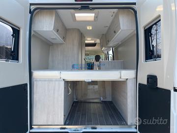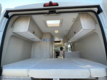 Posti letto: 2 (grande letto matrimoniale posteriore - dimensione 186x149 cm - con reti a doghe sollevabili per aumentare il vano e la capacità di carico)