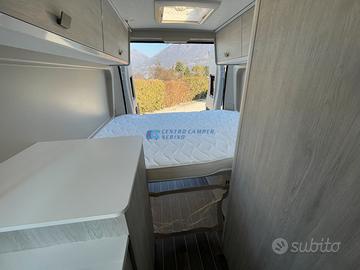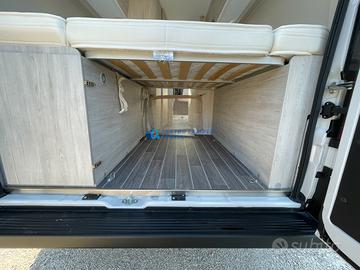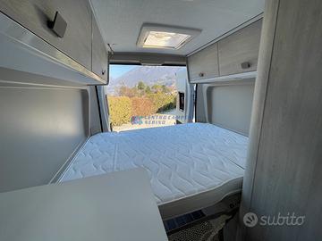 Posti letto: 2 (grande letto matrimoniale posteriore - dimensione 186 x 149 cm - con reti a doghe sollevabili per aumentare il vano e la capacità di carico)