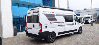 NOVITA' POWER DI CASA ROLLER TEAM!Furgonato Livingstone 2 Power Edition con letto matrimoniale in coda su motore Fiat Ducato 2.2 140 cv con cambio automatico. 4 posti omologati e 2 posti letto. Lungo 5,99 mt e largo 2,05 mt. Il veicolo di serie offre: Pneumatici 4 stagioni, comandi radio al volante, ABS/ESP, Start&Stop, Cruise Control, Fix&Go, Traction+, doppio airbag, specchietti regolabili elettricamente con sbrinatore, Pack Comfort (coprisedili, luce esterna, Cp Plus, oblò 70x50 in dinette, zanzariera portellone scorrevole, gradino di ingresso elettrico, oscuranti cabina plissettati), Pack Light (paraurti anteriore in tinta con la carrozzeria, piastra paramotore nera, fari fendinebbia, freno a mano elettrico), Pack Style (cerchi in lega 16", cruscotto Techno, volante e cambio in pelle, TPMS), Pack Travel (radio 9" Pioneer Bluetooth/Apple Car Play/Android Auto, retrocamera), Pack Prestige (2 pannelli solari 200W, veranda 3,75 mt antracite), batteria al Litio 100 ah e tappezzeria Sand (microfibra + similpelle).