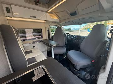 Climatizzatore Manuale cabina, Air Bag Guidatore & Passeggero, Sedili girevoli cabina guidatore e passeggero, Paraurti anteriore verniciato, Techno Trim, Griglia frontale nera - Skid Plate nero, Cornice fari nera, Radio capacitive touch screen 9'' Android Auto/Apple Carplay Wireless con comandi al volante, Piano cottura a 2 fuochi, Posto letto aggiuntivo in dinette, Prese USB zona giorno e zona notte, Reti letto con doghe in legno, Luce esterna a led