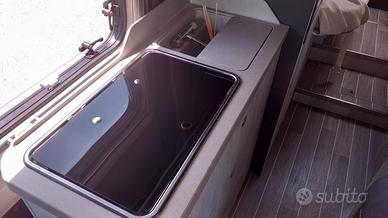 Ampio garage posteriore con grande capacità di stivaggio e doppio pavimento, mobili modulari con cassoni che si possono smontare per aumentare il piano di carico.