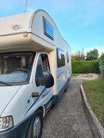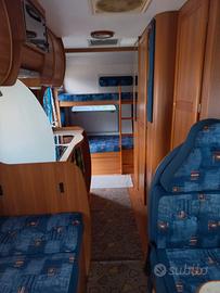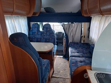 Camper mansardato lungo 7,25m. Posti letto 7 - 4 fissi + 3 da dinette - omologati viaggio 5. Motore Fiat Ducato 2.8jtd km 87.000 originali, sempre ben tenuto e risistemato a 07.2020. Gomme 4 stagioni Michelin per camper nuove + tagliando completo e revisione 06/ 2025. Bagno con box doccia separato. Diversi optional fra i quali: veranda, portabici per 2, webasto a gasolio, stufa truma a gas, antenna tv, doppio serbatoio acqua, aria condizionata cabina. Doppio letto a castello in coda larghezza camper, eventualmente alzabile per aumento carico.