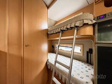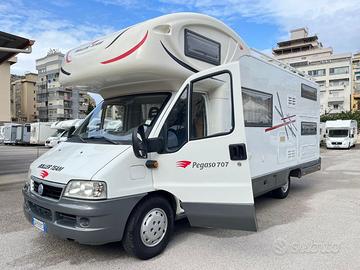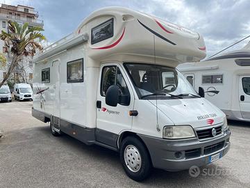 Marca: Roller Team Modello: Pegaso 707 Anno: 2005 Meccanica: Fiat Ducato 2.8 Jtd 146 Hp POwer - Condizionatore Evaporativo Viesa - Tenda - Soffietti - Blocco Smev - Forno - 2 Rec. acqua - Portabici - Pannello solare - Radio - Antenna Tv - Triogas - Paraurti verniciato in tinta - Portapacchi c/scaletta - Oblò panoramico - Webasto - Porta zanzariera - Luce ext.: si Posti letto: 7 con doppia dinette e letti a castello in coda Mt.: 7,20 Km: 86.700 Finanziabile in 120 comode rate senza acconto! Tuo ad Euro 26.900!! Vemacar....il camper della tua famiglia!!