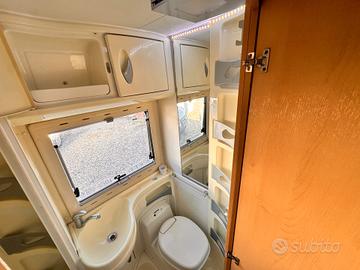 Autoradio Chiusura centr. cabina Finestra scorr. laterale Frigorigero trivalente maxi autom. Gavone volume variabile Mansarda ribaltabile Oblo' con ventola Pannello solare Porta TV ,Retrovisori elettrici e termici,Ruota di riserva,Sedili cabina girevoli,Servosterzo,Tendalino WC cassetta estraibileBagno e doccia separati Cappa aspirante cucina,Cucina 4 fuochi,Finestre Seitz,Garanzia 12 mesi su infiltrazioni, Maxi oblo' centrale,Oblo' in bagno,Paraurti ant. verniciato,Portabici esterno,Riscaldamento a gasolio canalizz.,Scaletta posteriore,Serratura centralizzata cabina,Specchietti laterali elettrici,Vetri elettrici anteriori,Z