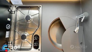 pack fiat: Fendinebbia, Paraurti anteriore in tinta con la carrozzeria, Piastra paramotore nera, Cerchi in lega bicolore da 16", Volante e pomello del cambio in pelle, Cruscotto Techno, TPMS - Controllo automatico della pressione degli pneumatici, Freno a mano elettrico, Porta con 2 punti di chiusura, con finestra e chiusura centralizzata, Pannello solare da 200W con regolatore MPPT, Cabina plissettata oscurante, Veranda antracite, Presa gas da esterno + doccia garage.