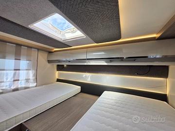 ABS / ESC / TRACTION, AIR BAG GUIDA, AIR BAG PASSEGGERO , ANDROID AUTO & APPLE CARPLAY , BOTOLE A PAVIMENTO, CERCHI IN LEGA DA 16", CLIMA MANUALE CABINA, COMANDO RADIO AL VOLANTE, CRUISE CONTROL / LIMITATORE DI VELOCITA', CUCINA 2 FUOCHI E LAVELLO , DOCCETTA GAVONE, FARI POSTERIORI LED, FINESTRE CON DOPPI VETRI CON OSCURANTE E ZANZARIERA, FODERE SEDILI CABINA, FRENO A MANO ELETTRICO, FRIGORIFERO 158 LT A COMPRESSORE, GAVONE GARAGE RISCALDATO, GRADINO ENTRATA INTEGRATO, ISOFIX, LUCE ESTERNA A LED, MONITORAGGIO PRESSIONE PNEUMATICI, OBLO' BAGNO, OBLO' CENTRALE, OBLO' POSTERIORE, OSCURANTI CABINA PLISSE', PANNELLO SOLARE CON REGOLATORE, PARAURTI ANTERIORE VERNICIATO, PIASTRA PARAMOTORE NERA, POSTI LETTO 5, POSTI OMOLOGATI 5, PRESA 220 GARAGE, PRESA ESTERNA GAS, PRESE USB, RADIO TOUCHSCREEN DAB USB BLUETOOTH, RETROCAMERA, RISCALDAMENTO TRUMA COMBI 6 GAS, SERBATOIO ACQUE GRIGIE RISCALDATO, TENDALINO ESTERNO, TETTO IN VETRORESINA ANTIGRANDINE, TETTO PANORAMICO, TRUMA INETX +PANNELLO DI CONTROLLO+APP, VOLANTE E POMELLO CAMBIO IN PELLE, ZANZARIERA SU PORTA D'INGRESSO