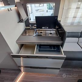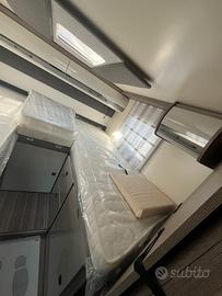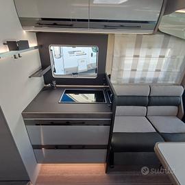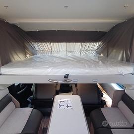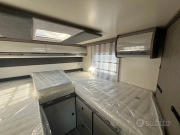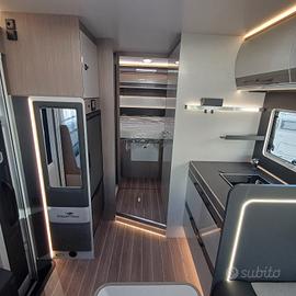 Motorizzazione Fiat Ducato 2200 cc 140cv Cambio manuale con freno a mano elettrico Lunghezza di 7,45m - Larghezza di 2,35 m - Altezza di 2,95 m 4 posti viaggio/letto Pack Zefiro FIAT Fendinebbia Paraurti in tinta Cerchi in lega 16" bicolore diamantati Volante e pomello cambio in pelle Letti gemelli matrimoniale e letto basculante in cabina Tendalino Thule Attacco doccino acqua calda e fredda Display carplay Pioneer da 9" con retrocamera a colori Staffa per attacco TV Bagno con doccia separata Pannello solare da 200 w con regolatore di carica MPPT predisposizione per 2 batterie a Litio Riscaldamento truma frigo a compressore158 L acuqa potabile 120 LT porta d'entrata XL centralizzata con 2 punti di chiusura attacco esterno del gas e doccino acqua calda e fredda