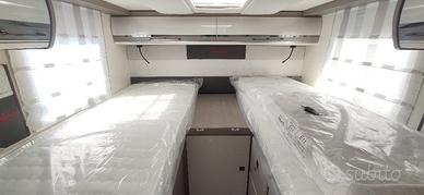 NOVITA' POWER DI CASA ROLLER TEAM!Semintegrale con letti gemelli in coda e basculante anteriore su motore Fiat Ducato 2.2 140 cv con cambio automatico. 4 posti omologati e 4+1 posti letto. Lungo 7,45 e largo 2,35. Il veicolo di serie offre: doppia batteria al litio, pneumatici 4 stagioni, comandi radio al volante, sedili cabina girevoli e braccioli, Traction+, ABS/ESP, Start&Stop, doppio airbag, Cruise Control, specchietti regolabili elettricamente con sbrinatore, Fix&Go, radio 9" Pioneer Bluetooth/Apple Car Play/Android Auto, retrocamera, finestre Seitz, prese USB zona letto, presa 220V nel gavone, zanzariera scorrevole porta ingresso, frigorifero a compressore 158 Lt, porta di separazione zona giorno/notte, riscaldamento Truma Combi 6 a gas + Inet-X, serbatoio acque grigie riscaldato e coibentato, gradino ingresso isolato termicamente, coprisedili cabina, Pack Zefiro Fiat (fari fendinebbia, paraurti anteriore in tinta con la carrozzeria, piastra paramotore nera, cerchi in lega bicolor 16", volante e cambio in pelle, cruscotto Techno, TPMS, freno a mano elettrico, porta a 2 punti con chiusura centralizzata e finestra fissa, 2 pannelli solari 200W con regolatore MPPT, oscuranti cabina plissettati, veranda antracite, presa esterna gas + doccino garage), Pack Selekt (cambio automatico 8 marce) e colorazione esterna della cabina Metallic Black.