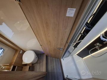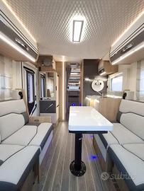 Climatizzatore in cellula Teleco telair con pompa di calore, Clima in cabina, Tendalino Thule, Antenna satellitare, Pannello fotovoltaico, Antifurto perimetrale e volumetrico, Sospensioni pneumatiche, Radio Bluetooth, comandi radio al volante, volante rivestito in pelle, Retrocamera con doppio occhio per visione viaggio e parcheggio, Oscuranti plissettati in cabina guida, Fari fendinebbia, Predisposizioni per portabici a parete posteriore, Cabina verniciata in grigio silver metallizzato, pareti laterali verniciate in grigio pastello, Cupolino con vetro panoramico integrato, Pneumatici da 16", Doppia illuminazione esterna a tendalino, luce esterna sopra la porta d'ingresso, Porta d'ingresso con finestra e 2 punti di chiusura centralizzata, Zanzariera scorrevole all'ingresso, Porta TV estraibile nel soggiorno, Cucina con 3 fuochi, Frigorifero AES da 135lt., bagno con finestra, toilette a cassetta estraibile, doccia con porta rigida, piatto doccia con 2 punti di scarico, Riscaldamento Truma combi diesel, Comando per il riscaldamento Truma iNet X, serbatoio di recupero acque grigie riscaldabile,...[Cod: 1093988-846]