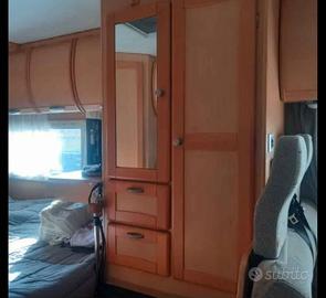 Portamoto, gancio traino, 2 serbatoi acqua, 2 serbatoi scarico, 2 batterie, pannello solare, riscaldatore cellula, antenna TV, sospensioni aria Goldschmitt con compressore incorporato, luci led, retrocamera.