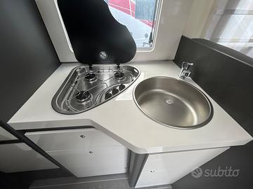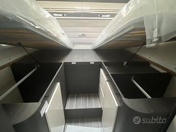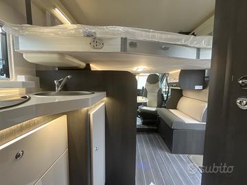 Il veicolo si presenta con un ampio living , cucina lineare , bagno con doccia a volume variabile , letti gemelli e letto basculante