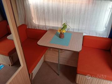 Roulotte 4 posti, molto ben tenuta , così composta: 1 dinette trasformabile in letto matrimoniale + seconda dinette trasformabile in letto singolo. Possibilità di recavate un secondo letto singolo a castello.