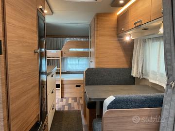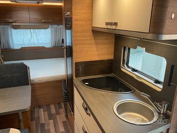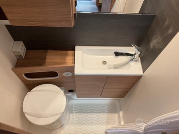 Frigorifero trivalente 150 l, stufa Truma con canalizzazione e ventilazione forzata, cucina 3 fuochi, due oblò, bagno con wc cassetta e doccia, boiler acqua calda