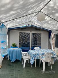 Vendesi roulotte accessoriata .3 posti interni piu veranda seminuova accessoriata con letto matrimoniale pavimento in parquet. Compreso gazebo esterno ,cucinotto con gas forno e lavandino. 5000 EURO trattabili.