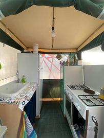 Vendesi roulotte per uso stagionale in camping , attualmente al rimessaggio.Documenti in regola. Tre posti interni piu' veranda seminuova con possibilita' di letto matrimoniale. Gazebo seminuovo 5×3 , cucinino accessoriato .Euro 5000.Il camping e' Acapulco ad Albinia., aperto da aprile a settembre.Il camping e' sul mare , e' molto tranquillo e piccolo si adatta benissimo ai bambini anche piccoli .Qui possono girare in autonomia senza grandi pericoli.