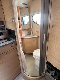 Bagno con cassetta estraibile e doccia, ampio armadio, dinette classica trasformabile in letto singolo, particolare letto con parte estraibile che consente di creare un comodo letto matrimoniale con grande garage sottostante