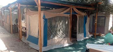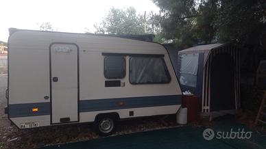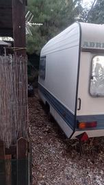 roulotte Adria 400 t del 1985 in ottime condizioni e con documenti in regola. la roulotte è stata gommata e revisionata nel 2023 e dopo la revisione l'ho tenuta in un campeggio. non presenta alcuna infiltrazione e gli oblò sono tutti integri, in ogni finestra sono presenti gli oscuranti. la cuscineria e quella originale ed è in ottime condizioni. al suo interno è composta da tutta la mobilia originale e l'impianto luce è perfettamente funzionante. il frigo l'ho attaccato per prova quando l'ho acquistata e funzionava ma poi non l'ho più usato perché ne tenevo uno più grande in campeggio. sono presenti 4 posti letto. 2 lettini a castello e un letto matrimoniale, entrambi possono diventare tavolo con le relative sedute. a corredo della roulotte REGALO la veranda che si vede in foto ed anche il cucinotto . la veranda è datata e per questo il tessuto è un po' fragile ma oltre un paio di piccoli strappetti è strutturalmente perfetta cerniere e zanzariere funzionanti. domenica 19 aprile in mattinata io sarò in campeggio per smontare le ultime cose quindi chi vuole potrebbe venire a vederla.