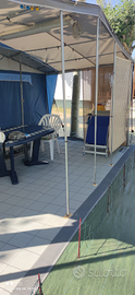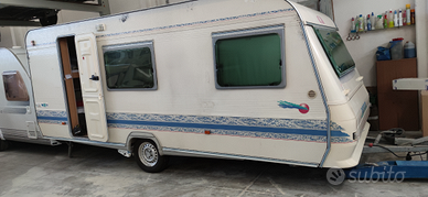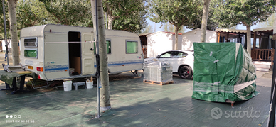 RIVISIONATA FINO A MARZO 2026 Cinque posti letto, con doppia dinette,cucina completa con fuochi lavandino e frigorifero trivalente ,bagno con cassetta estraibile appena verificata,veranda e verandino pavimento PVC +verandino per campeggio itinerante,stuoia CONVER,bombola ruota di scorta ,aria condizionata climatizzatore deumidificatore,riscaldamento ,mover senza fili con batteria pannelli solare carica batteria mai usati,unico proprietario,compresi tutti gli accessori per campeggio stagionale oppure campeggio itinerante