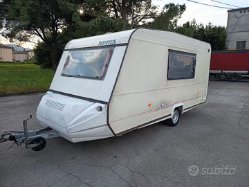 vendo bellissima roulotte adria lunghezza 6.10 compreso timone larghezza 2.29, peso 8.65. 4 posti letto di cui un letto fisso matrimoniale e una dinette trasformabile in letto matrimoniale. bagno con wc chimico con cassetta estraibile dall esterno, doccino con piatto, cucina con 2 fuochi, frigo trivalente,raffrescatore zefir, veranda esterna con chiusure, nessuna infiltrazione, impianto luci e acqua tutto funzionante, CON POSSIBILITÀ DI TRASPORTO IN ZONA. documenti in regola prezzo la voltura prezzo 2.900 € per informazioni contattatemi 3331858703 manuel