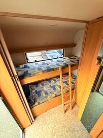 4 Posti letto: dinette trasformabile in letto matrimoniale (misure 190x140) + 2 letti singoli a castello (misure 193x80)