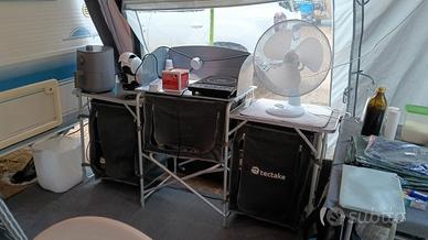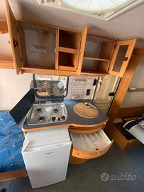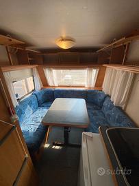 roulotte 4 posti comodissimi con 5 posto bambino,tenuta sempre al coperto, camperizzata, pannello solare batteria mover, revisione fatta adesso la pianta ha una doppia dinette,ha anche un serbatoio acque scure maggiorato per fare libera. vendo completa anche di mobile cucina esterno frigorifero 220 + quello della casa madre funzionante con tendalino piccolo e veranda obelink autoportante che si gonfia zanzariere/oscuranti interni sostituiti per la vendita, non infiltrata qualsiasi prova a carico vostro, una dinette trasformata in letto fisso con rete a doghe materasso nuovo. non trattabile passaggio di proprietà a carico acquirente, valuto eventuale trasporto non lontanissimo da concordare a parte.