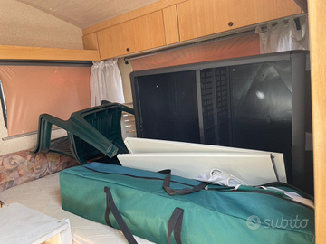 Vendo roulotte del 96,5 posti letto (1 letto a castello, un letto singolo e un letto da una piazza e mezza) compreso di tutto quello che c'è dentro, tavoli, sedie, gazebo ecc... La roulotte si trova in un rimessaggio a Grosseto.