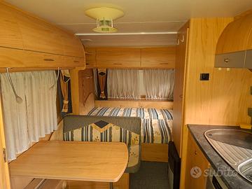 Caravan Burstner Belcanto 490 TK anno 2006.lunghezza totale 7,31 mt,larghezza 2,3mt massa a pieno carico 1300kg.Matrimoniale anteriore,dinette centrale trasformabile in letto, letti a castello trasversali.bagno con wc a cassetta,lavabo.frigo trivalente nuovo e piano cottura a tre fuochi.boiler a gas,stufa trumatic S 3002 con ultraheat posteriore a 220V, caravanstore zip completo di pareti laterali e frontale completo di pali di pressione e rinforzo centrale.la caravan è ferma da 3 anni,da revisionare.mover prestige 2