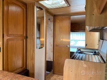 Interni tenuti benissimo, sempre riparata in rimessaggio coperto. Bagno al centro della roulotte, così un letto può stare fisso e l'altro può restare un tavolo fisso. Revisione e documenti a posto. Compresa veranda e cucinotto collegato, della stessa serie della veranda. Quindi possibilità di fare angolo cottura separato dalla stanza della veranda ma senza dover uscire dalla veranda. Paleria ottima e tessuto molto robusto.