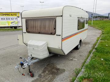 Roulotte royal car vintage tutta ristrutturata, completamente consolidata e sigillata, lucidata e camperizzata al 100%, con revisione in corso di validità. La roulotte dispone di uno sportellone visibile nelle foto sul fianco destro che, aprendosi, permette il caricamento di cose lunghe e/o ingombranti nella parte anteriore, nella zona prevista per il letto matrimoniale che può essere ripiegato e sollevato in maniera tale da lasciare posto per i bagagli. L'impiantistica elettrica interna della roulotte è stata completamente rifatta insieme a quella idraulica: allacciandosi ad un rubinetto esterno l'acqua corrente arriva al lavello di cucina e al lavandino del bagno, in più è presente un boiler elettrico che permette di avere anche l'acqua calda. Sul tetto è stato installato un pannello solare che ricarica la batteria presente a bordo. La roulotte dispone pertanto di corrente e illuminazione interna anche se è staccata dalla motrice. Gli altri servizi interni sono tutti perfettamente funzionanti, incluso il frigo trivalente e la stufa a gas truma ventilata. Illuminazione interna e fanaleria rifatte tutte a led. Telecamera posteriore. Rinforzata, igienizzata e sanificata. Non serve davvero alcun tipo di lavoro supplementare, tutto il fattibile è stato già fatto... Gomme e freni nuovi. Prezzo richiesto non trattabile.
