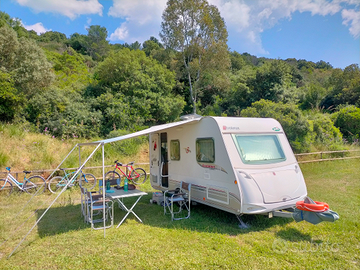 Vendo Caravan Sterckeman 420 cp Evolution confort, 4 posti letto del 2010, completamente camperizzata. DISPOSIZIONE INTERNA: Letto matrimoniale fisso con materasso altezza 12 cm su doghe in legno, ribaltabile per carico interno ed ispezione tanica acque bianche da 50 litri. Tinette 4 posti, trasformabile in letto matrimoniale da una piazza e mezza. Bagno con doccia acqua calda e lavello con miscelatore, finestra con zanzariera. Cassetta wc estraibile dall'esterno con carico acqua. Comodo armadio a ripiani componibili e stufa Truman 3500. Boiler acqua calda Truman 5 litri con spia esterna e interruttore di accensione e spegnimento. Serbatoio acque chiare da 50 litri con carico dall'esterno. Cucina tre fuochi, frigo trivalente. Tutte le finestre possiedono oscuranti e zanzariere compreso la porta d'ingresso che è modulabile per metà. Oblò panoramico. ACCESSORI : Impianto TV con antenna, Moover Alco con telecomando, impianto fotovoltaico 300 Watt con due batterie di accumulo da 80 Ampere a scarica lenta anno 2024, parallelatore e computer elettronico per gestire le batterie e i loro livelli di efficienza. Inverter da 3000 watt e stacca batterie manuale. Presa 220 onda pura dedicata, comoda in viaggio o in sosta libera per un fon, un frullatore o una aspirapolvere. Tre prese USB. Portabici Thule posteriore per non gravare peso sul timone e bilanciare bene i carichi. Tendalino avvolgibile Thule, tipo camper, nuovo 2024. Impianto Duogas elettronico per lo scambio delle bombole. Ruota di scorta con supporto fisso riposta dentro al gavone attrezzi, Recipiente acque reflue su ruote, Maniglione sicurezza porta d'ingresso. Gomme da carico 2024. Retrocamera con monitor a colori e antenna wifi per manovre di retromarcia. Portellone laterale esterno per ispezione gavone. Fari a led ausiliari anteriori e posteriori per manovre in movimento. Luce esterna.
