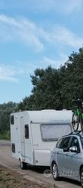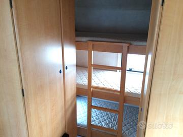 Roulotte Caravelair Antares 446 del 2001 con dinette matrimoniale e 3 letti a castello, interni in perfetto ordine, esterno con segni di grandinata.