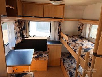 Roulotte del 1998, tenuta molto bene, sempre al coperto, appena fatta revisione, gomme circa 500 Km, nessuna infiltrazione. Vendo causa inutilizzo ( purtroppo ). Completa di veranda più cucinotto ( volendo si può non montare e chiudere ugualmente semplicemente montando la "parete" lato timone ) Tanti accessori compresi, scaletta a due scalini, telo esterno antisabbia per la veranda, teli vari per la copertura della toulotte, tavolini e armadietti per la cucina. Prezzo poco trattabile viste le condizioni e gli accessori. Disponibile per visione.