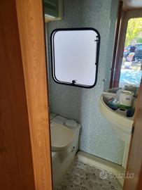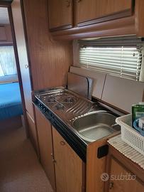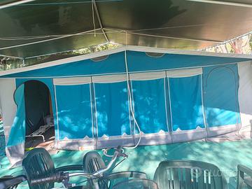 lunghezza mt.7, bagno e wc a cassetta estraibile dall'esterno,frigo esterno ,forno a gas esterno nessuna infiltrazione essendo sempre stata posteggiata al coperto, completa di veranda in ottime condizioni Aria condizionata ,pavimento per veranda e molti accessori e mobilettiche servono per il campeggio.