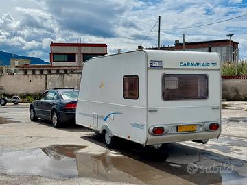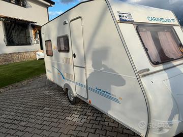 Tenda e veranda inclusi nel prezzo. Caravelleair Antares Luxe 425, roulotte compatta ideale per viaggi e spostamenti oltre che per un uso stanziale. Configurazione interna iniziale letto matrimoniale sul retro e dinette nella parte anteriore trasformabile in un altro letto due posti. La Dinette anteriore c'è ancora ma è stato fatto un vero e proprio materasso per un eventuale postazione fissa del secondo letto matrimoniale, bagno con doccia cucina e lavabo frigo funzionante pompe acqua appena revisionate sia nel bagno che per la cucina con serbatoio esterno estraibile. Il bagno è possibile usarlo anche in viaggio senza corrente elettrica. Timone anti sbandamento. Tenda nuova con fattura settembre 2025, Caravanstore Fiam mai usata più tenda veranda in perfette condizioni fatta su misura. Roulotte pratiche e leggera facile da spostare anche a mano da una sola persona. Vendo per quasi totale inutilizzo a causa di mutate circostanze familiari.