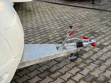 Portabici sul timone davanti al gavone anteriore per due biciclette. Pneumatici sostituiti estate 2025 e controllo freni e luci, Roulotte perfettamente marciante e revisionata, da allora percorsi circa 300 km.