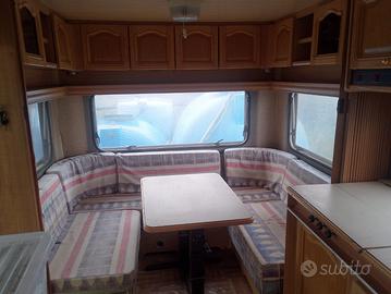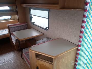 vendo roulotte per passaggio a roulotte più grande. 5 posti letto . castello in testa, dinette centrale singola e dinette salotto matrimoniale in coda. tutto funzionante, pannello solare montato nel tetto. documenti in regola targa e libretto. lunghezza 6.70. bagno svuotabile dall esterno con apposito sportellino. tutte le finestre integre e con zanzariere.
