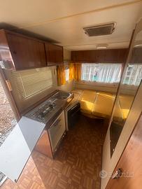 Roulotte 5 metri con 3 posti letto che diventano dinette 6 posti a sedere,e 1 letto singolo completa di cucina e frigo,bagno e armadio grande,molto spaziosa e adattabile alle proprie esigenze,tenuta prevalentemente al coperto struttura in ottime condizioni,ovviamente un po di usura dovuta dagli anni ma perfettamente utilizzabile in campagna,campeggio,cantiere,piazzale o altro….consegnamo in tutta la Sardegna o territorio nazionale con il nostro Carroattrezzi….prezzo di vendita 2.000€ più costi di trasporto e passaggio di proprietà per info Andrea 327—81—80—942