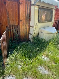 Vendesi a prezzo simbolico roulotte con casetta situato nel camping laGROLLAa challant S'anselme (AO)in buone condizioni abitative con canone annuale pagato fino al 31/07/2025