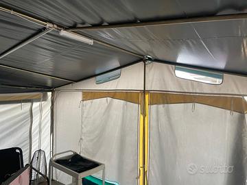 Disponibile roulotte 4,20 con veranda e pedana in ferro zincato ,rivestita in legno 2,5 x 4,5 Con 4 sedie scab con tavolo ! 3 sedie alluminio 4 sedie regista 1 stendino 6 fioriere
