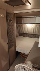 Riscaldamento tramite rete gas del campeggio, stufa truma in camper e ventil in casetta. Acqua calda tramite boiler elettrico da 10 litri. Impianto elettrico a norma.