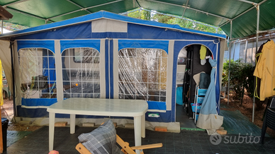 AFFARE DEGLI AFFARI! Vendo roulotte FENDT 4 posti letto + veranda + cucinotto in legno con piano cottura e frigorifero + 2 reti e 2 materassi collocati in veranda + più 8 sedie e tavolo per esterni + 4 poltrone e tavolino legno da esterni + struttura guardaroba da veranda + impianto illuminazione neon + ventilatore a pale con luce a tre intensità, tv da campeggio, ed altri accessori vari... Attualmente si trova presso il Camping Le Gorette a Marina di Cecina, Viale dei Garofani, piazzola 196..