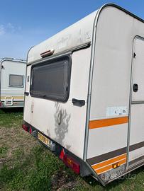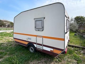 Roulotte con veranda esterna più cucina esterna. Varie attrezzature da campeggio. Come nelle foto 1400 compreso il passaggio proprietà. Da revisionare (ma non compresa nel prezzo di vendita) in caso di traino perchè ha la revisione scaduta da anni altrimenti ottima per stazionamento fisso presso campeggio estivo. Bollo sempre pagato.