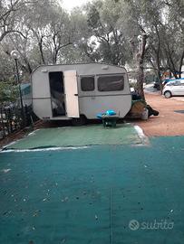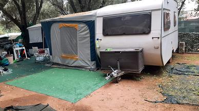 vendo roulotte 3 posti csoko con passaggio di proprietà. Completa di veranda. Nessuna infiltrazione. Misura 5 metri con timone. non marciante Attualmente si trova in campeggio a Palinuro