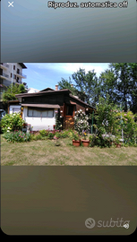 Vendesi roulotte con casetta di legno e veranda coperta fissa. Vicino a piste da sci posizionata in campeggio a Frabosa Soprana Piemonte