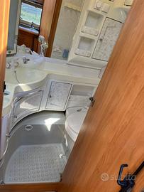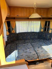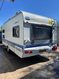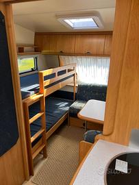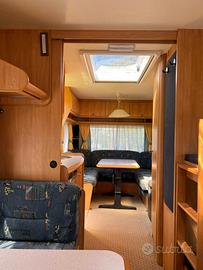 Condizioni generali molto buone. Dell’anno 2004, 6 posti letto: dinette posteriore trasformabile in matrimoniale, letto a castello fisso longitudinale anteriore, dinette anteriore trasformabile in letto una piazza e mezzo. WC Thetford con cassetta estraibile dall’esterno. Boiler acqua calda elettrico Truma Therme. Serbatoio acque chiare da 25 litri con carico dall’esterno ed estraibile. Stabilizzatore durante il traino Winterhoff WS3000. Stufa Truma a ventilazione forzata, portabici 2 posti, frigo trivalente. Interni molto curati, assolutamente senza infiltrazioni. Scuranti e zanzariere a tutte le finestre. Tendalino marca Fiamma. Completa di veranda. Molto ampia, luminosa e ben ventilata o arieggiata. Maxi-oblò panoramico. Lunghezza incluso timone 687 cm. Larghezza 230 cm. Peso pieno carico 1100 kg. Revisione valida fino a novembre 2027. Possibilita di trasporto. Sivtrova a Mentana. Per altre info o foto scrivere su whatsapp al numero 3478465233, Daniel